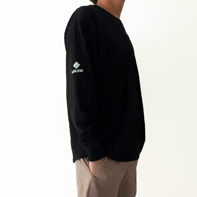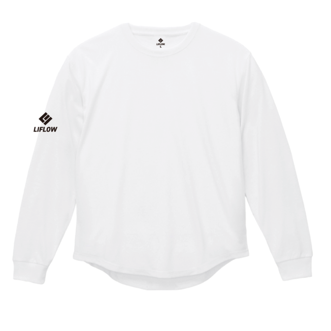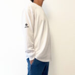 スポーツシーンから普段着まで幅広いシーンで活躍するラウンドテールデザインのロングスリーブTシャツ。シンプルに右腕にロゴを配置。