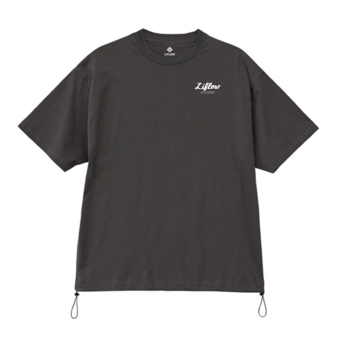 左右の裾口に、アクセントとなるバイカラーのドローコードを配したTシャツ。