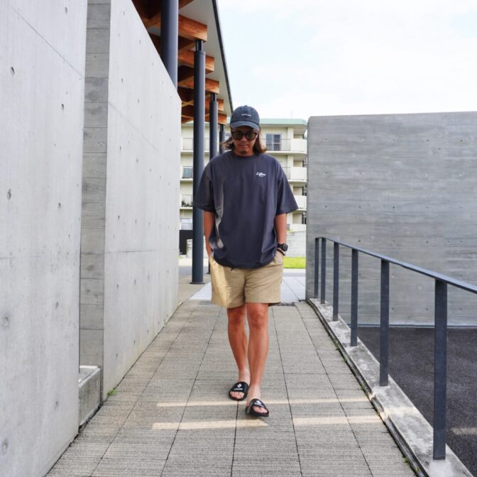 ドロップショルダーで全体的にゆったりとしたシルエットに仕上げており、裾を絞って好みの丈に調整することでシルエットに変化をくわえられます。
